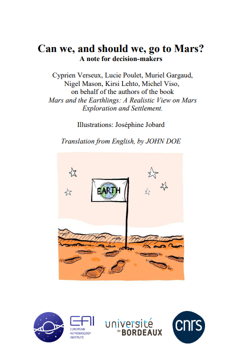 A summary of the main ideas, intended for decision-makes, was released a few months later (Can we, and should we, go to Mars? A note for decision-makers) and is currently being translated in various European languages.