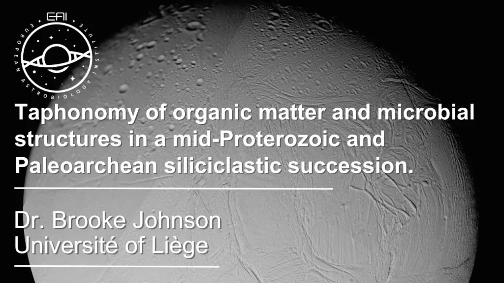 Taphonomy of organic matter and microbial structures in a mid-Proterozoic and Paleoarchean siliciclastic succession. Brooke Johnson – Université of Liège, Belgium LIVE SEMINAR: 4 February 16:00 CET EAI Zoom In…